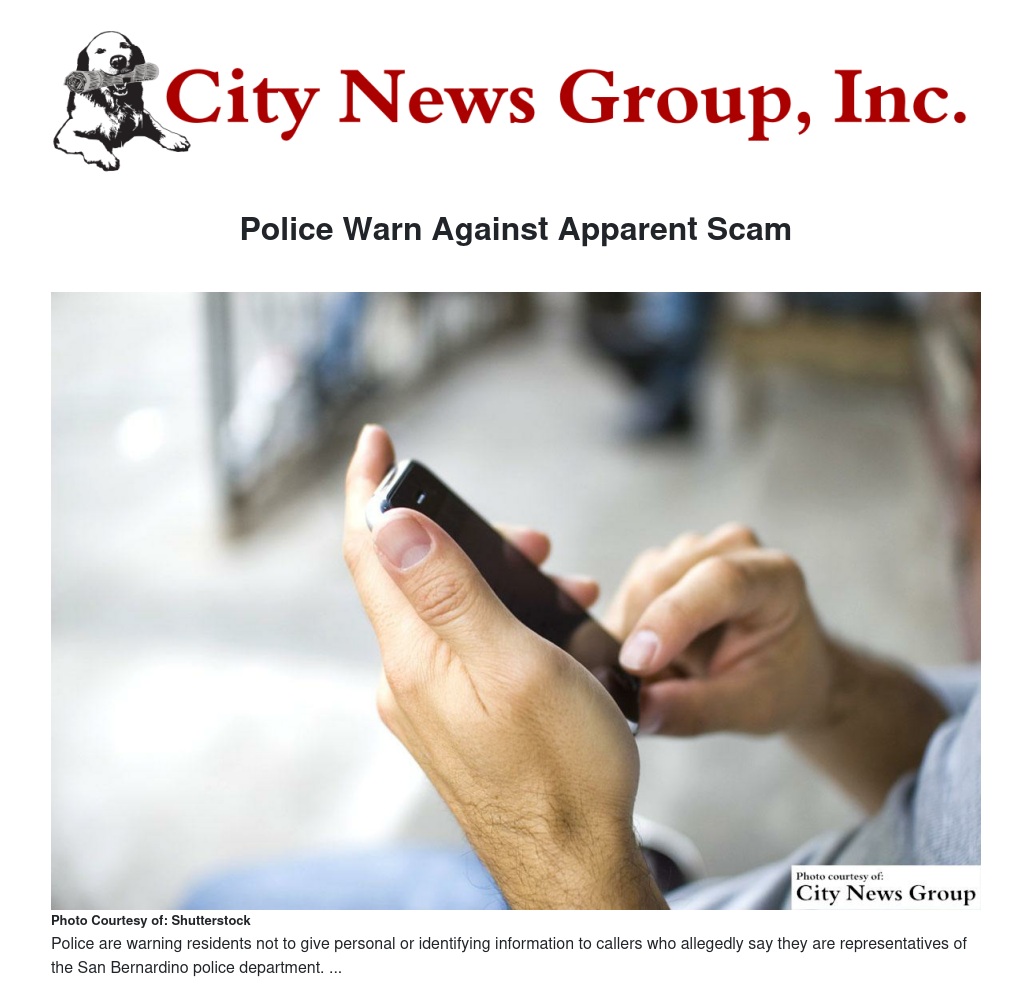 Police say they have been contacted by several residents who reportedly received calls from an individual identifying themselves as a representative of the San Bernardino City police department. Residents report being told by the individual that there is a warrant for their arrest and if the citizen fails to pay the warrant they will be arrested by San Bernardino police officials. The caller then reportedly attempts to solicit payment for the warrant, officials said.