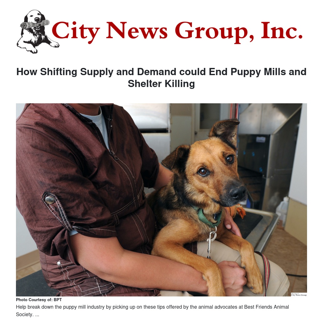 (BPT) - You bring two types of cupcakes to your first-grader's school party - chocolate and vanilla. The chocolate cakes are gone in minutes, while the vanilla ones linger. Next time, you'll probably just buy chocolate cupcakes. Supply and demand is a simple economic principle even the youngest consumers can understand, and it's the key to ending two industries that animal advocates would like to see go out of business forever - shelters and puppy mills.