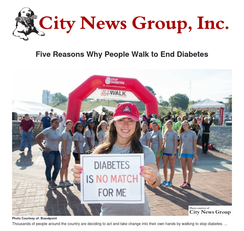 However, thousands of people around the country are deciding to act and take change into their own hands by walking to stop diabetes. People walk for many reasons: for family or friends, as a challenge to themselves or in memory of a loved one, but the following five reasons unite most participants' motivation to Step Out: Walk to Stop Diabetes.