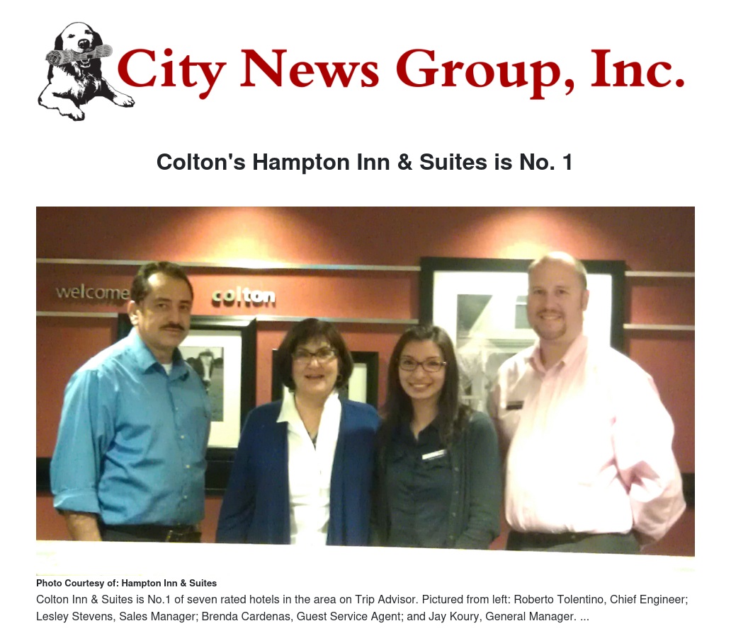 The hotel is located in the heart of Colton, just between the bustling I-10 and I-215 freeways, and it's the outstanding customer service and care the hotel staff emphasizes that has helped it establish the No. 1 ranking, according to sales manager Lesley Stevens.