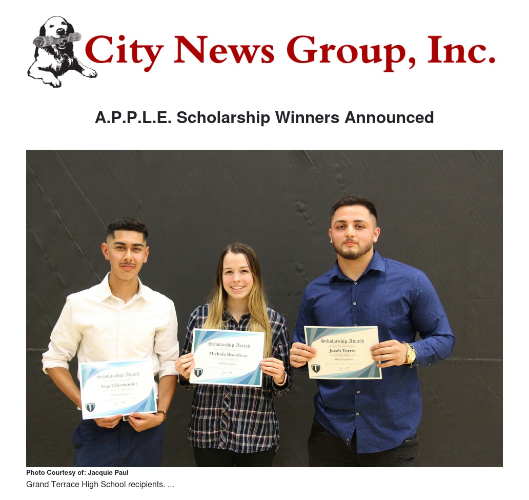 A.P.P.L.E. Scholarship Winners Announced by Jacquie Paul - City News Group, Inc.