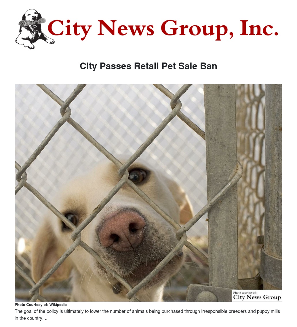 City Passes Retail Pet Sale Ban