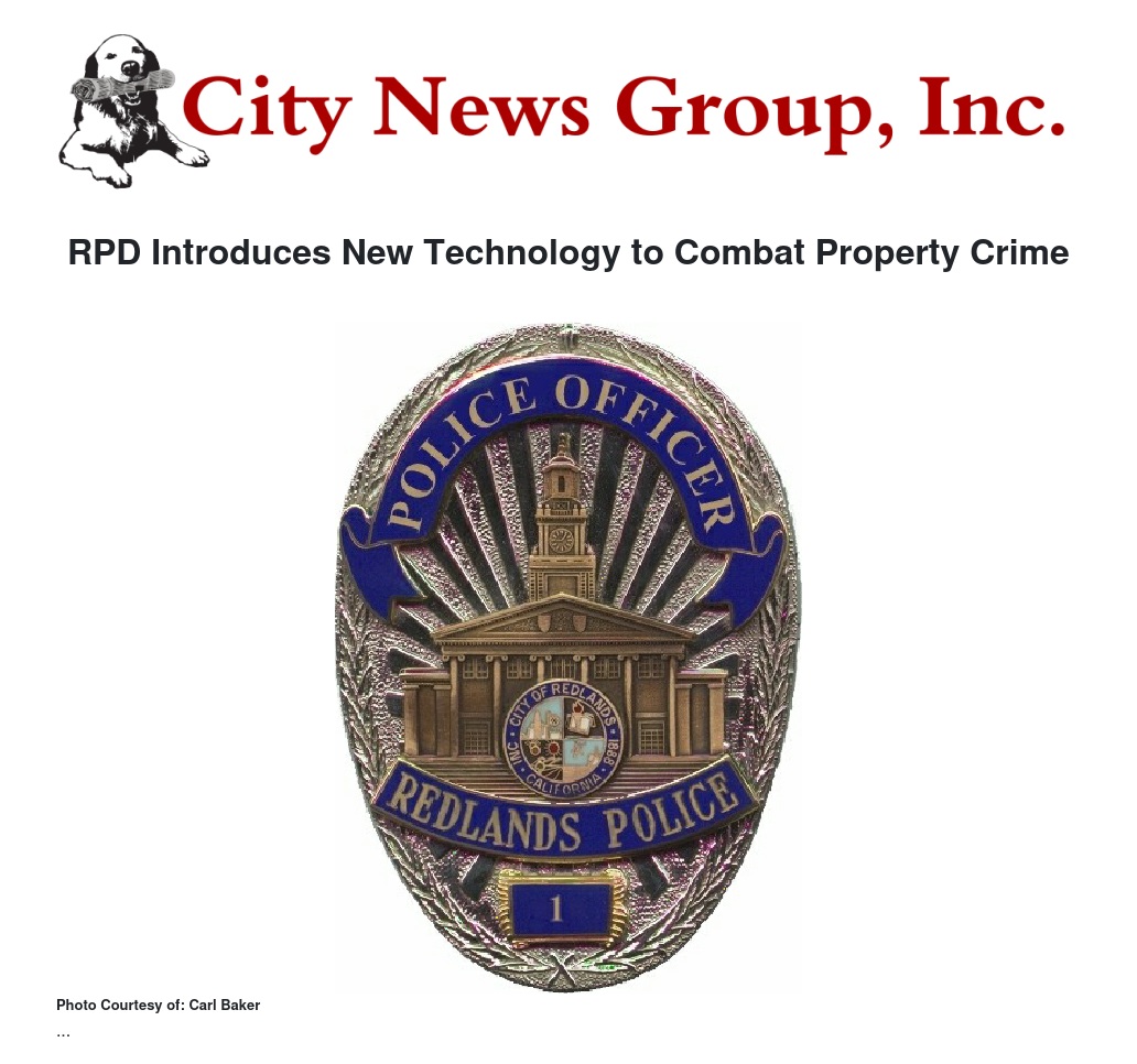 In its continuing effort to combat property crime in Redlands, the Redlands Police Department (RPD) has added CopDots, a new technology that will give law enforcement and the community a tool to combat property theft.