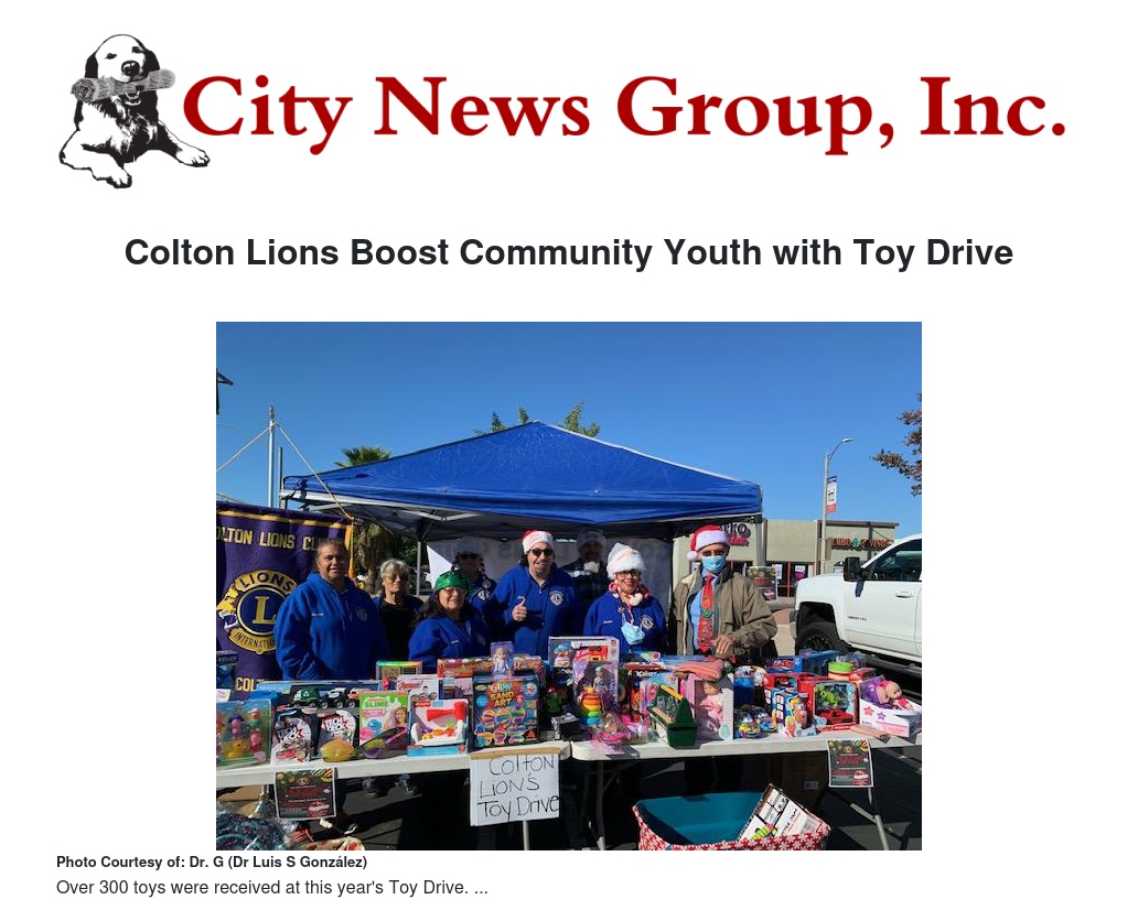 For the second year in a row, the Colton Lions Club did not disappoint. President Erik Morden reported that over 300 toys were received, which was a significant increase from the first year. Additionally, Production Partners of Corona donated $500 for the cause. All of the toys, once received, will be distributed to families in the south side of the city through the non-profit organization Faith, Hope and Change. “It's good to see that things are expanding after the dreary pandemic year, and we are blessed with great support and participation,” smiled Erik Morden.