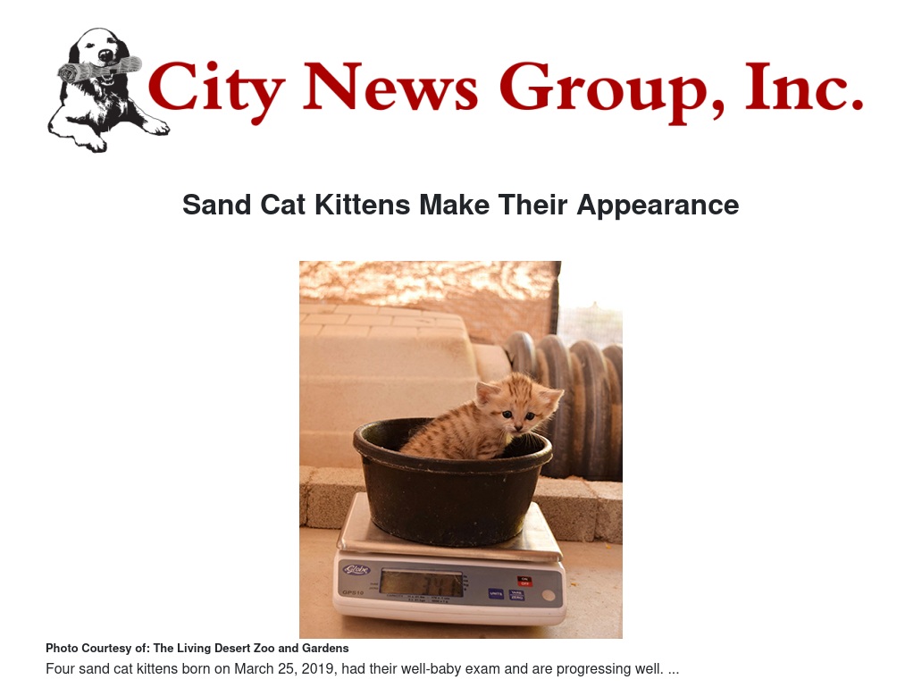 The Living Desert Zoo and Gardens is delighted to announce the birth of four sand cat kittens. This is the inaugural birth in the Zoo’s Desert Carnivore Conservation Center and is also the first sand cat birth at the Zoo since 2004.