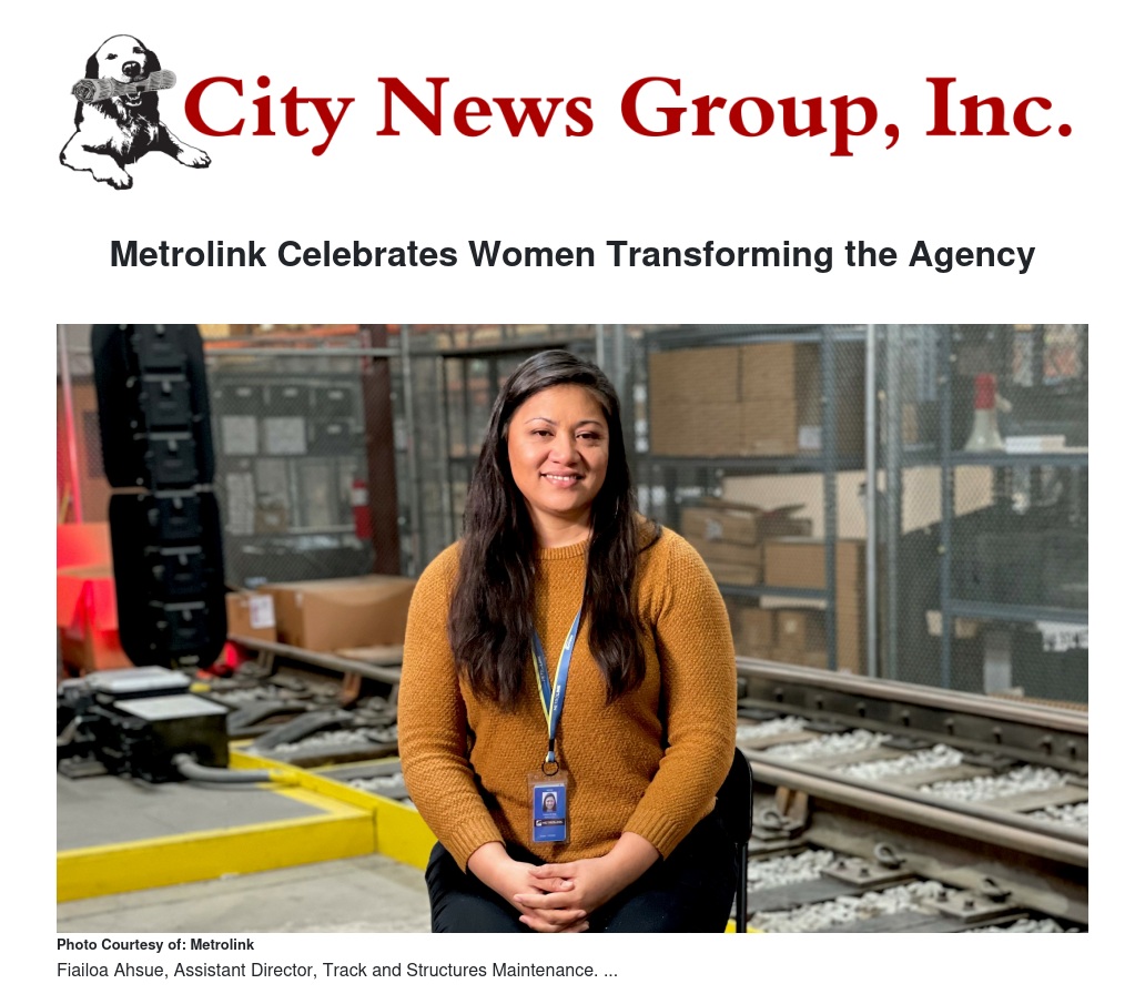 One of these important women is Fiailoa Ahsue, Assistant Director, Track and Structures Maintenance, who grew up in Moreno Valley.