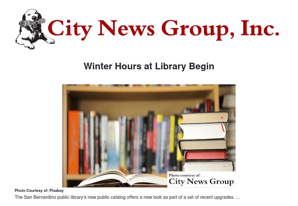 SAN BERNARDINO>> Hours at the Villaseñor Branch Library of the San Bernardino Public Library will shift to “winter hours” beginning Monday, Nov. 7.