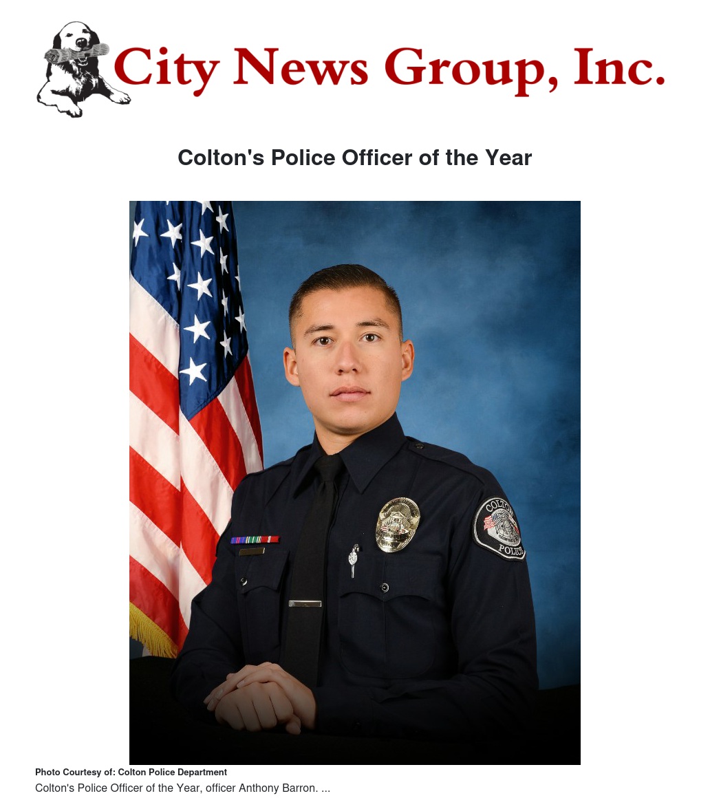 Colton's Police Officer of the Year by Claudia Cecilia - City News Group, Inc.