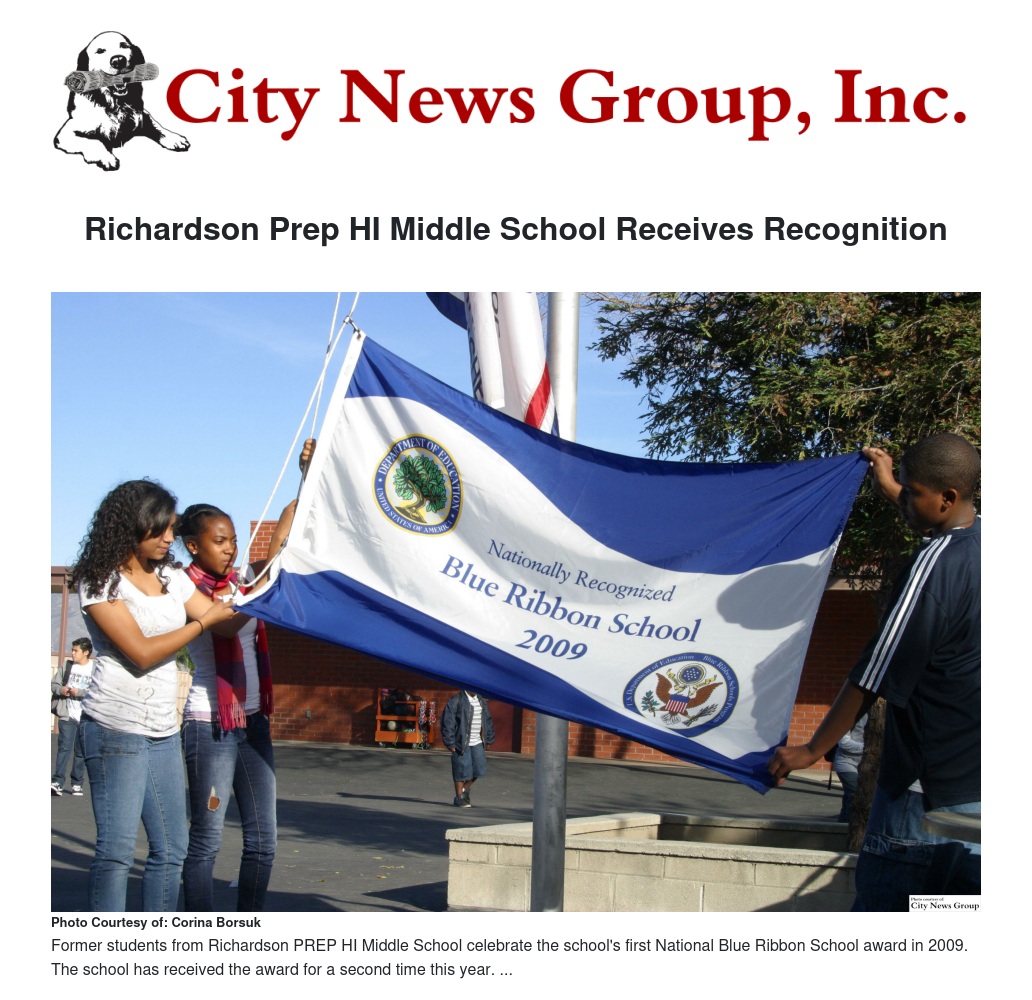 Richardson Prep HI Middle School Receives Recognition