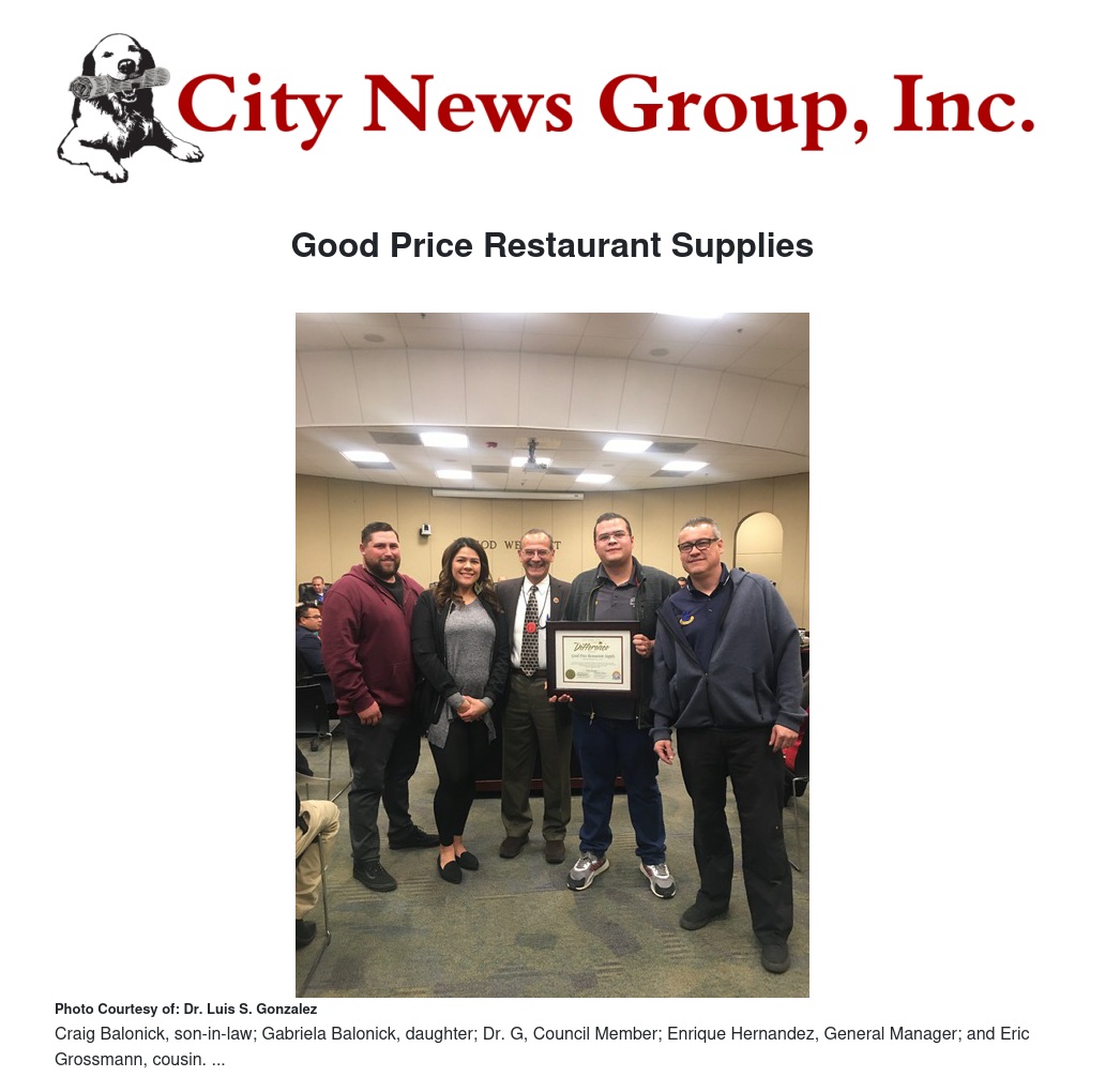 Good Price Restaurant Supplies by Dr. Luis S. Gonzalez - City News Group, Inc.