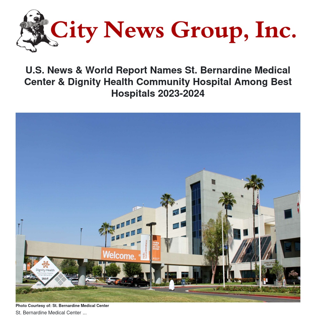 Dignity Health - St. Bernardine Medical Center has been named by U.S. News & World Report to its 2023-2024 Best Hospitals as a High Performing hospital for Heart Bypass Surgery, Congestive Heart Failure, Diabetes, Heart Attack, and Stroke. This is the highest distinction a hospital can earn for U.S. News’ Best Hospitals Procedures & Conditions ratings.