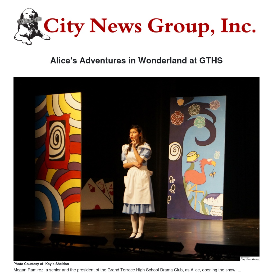 Grand Terrace High School was the place to be last weekend as they performed, for the very first time in school history, the play "Alice’s Adventures in Wonderland." The drama program put on a show to remember in the GTHS Theatre.