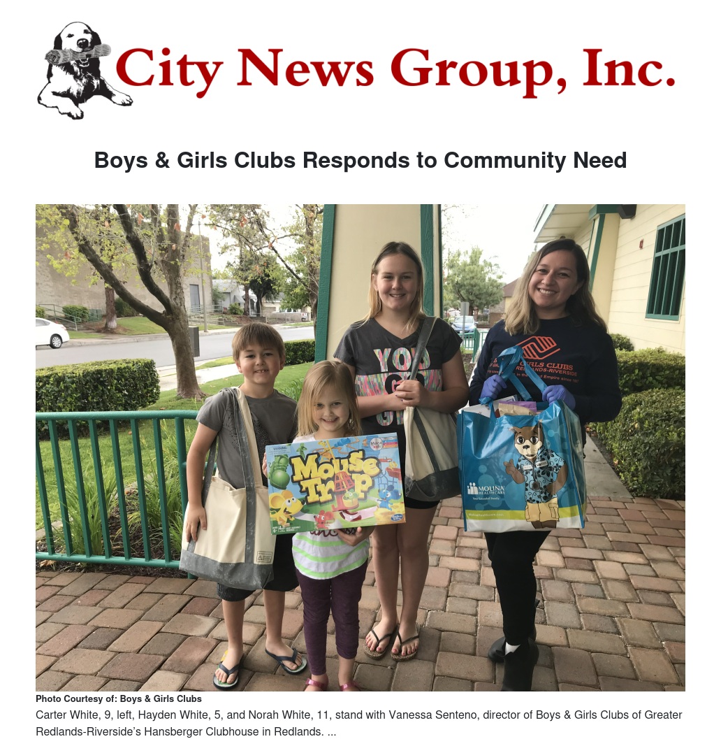 Boys & Girls Clubs of Greater Redlands-Riverside is meeting local families’ need for meals and educational kids’ activities during the statewide COVID-19 lockdown.