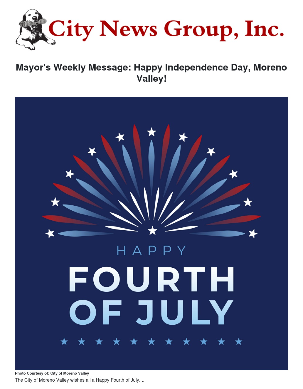 Mayor's Weekly Message: Happy Independence Day, Moreno Valley! by Ulises Cabrera - City News Group, Inc.