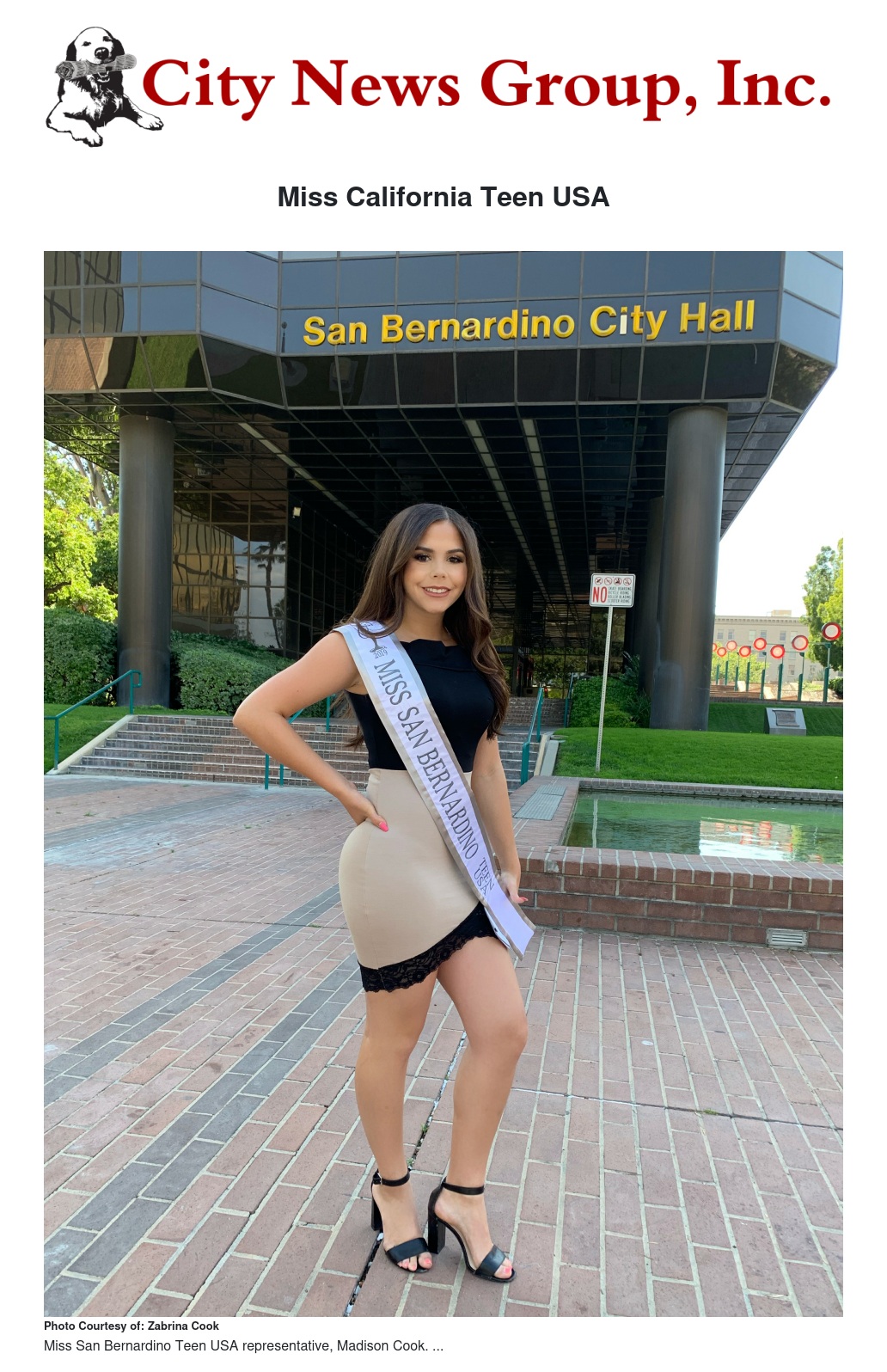 Madison Cook has been selected to represent San Bernardino at the Miss California Teen USA® Competition as Miss San Bernardino Teen USA. Her selection was based on her academic standing, involvement in her community, her passion for the pursuit of excellence and her interest in empowering other young women to follow in her footsteps.