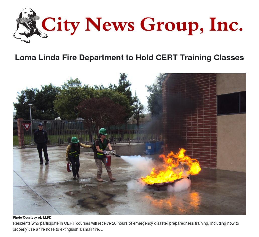 The Loma Linda Fire Department is once again holding Community Emergency Response Team (CERT) training for new members, and local residents are encouraged to sign up.