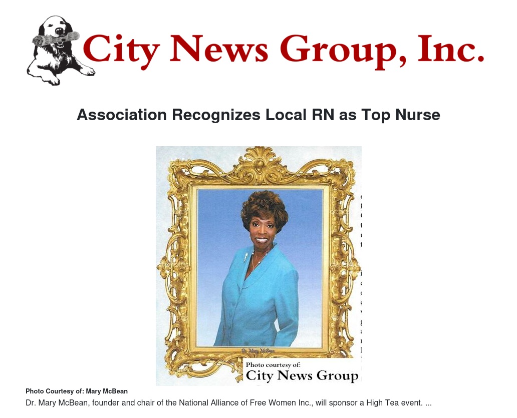 MORENO VALLEY>> The International Nurses Association, in honor of National Nurses Week, recognized Dr. Mary E. McBean, as a Top Nurse in Moreno Valley, California.