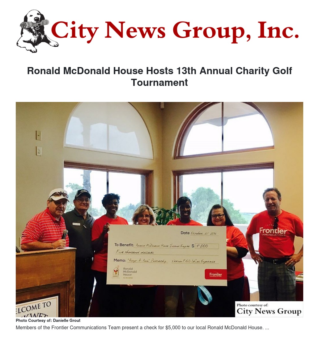 Frontier Communications, a sponsor of the event, presented a check for $5,000 to adopt a room at the Ronald McDonald House, the proceeds of which will directly benefit the day to day operations of the Ronald McDonald House.