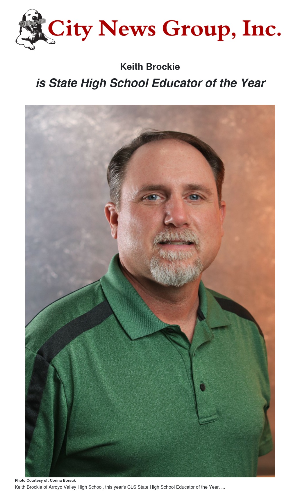 Prior to that, Brockie had been selected from among 11 of the top educators in CLS Region 10, which includes Inyo, Mono, Riverside, and San Bernardino Counties, as the Region 10 High School Educator of the Year.