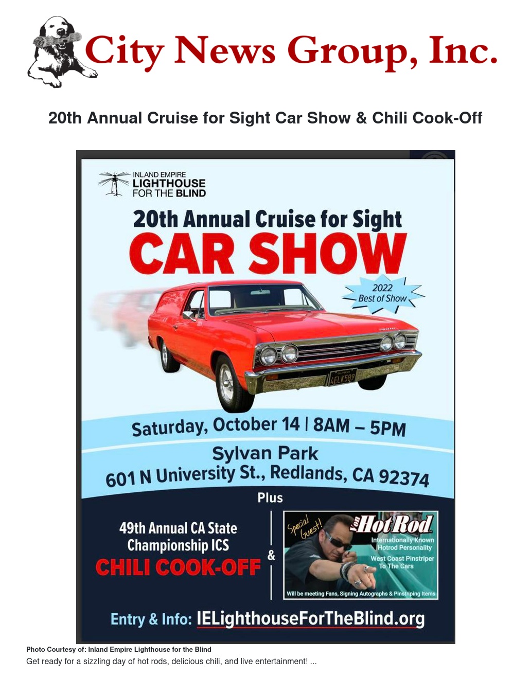 20th Annual Cruise for Sight Car Show & Chili Cook-Off by Inland Lighthouse for the Blind - City News Group, Inc.