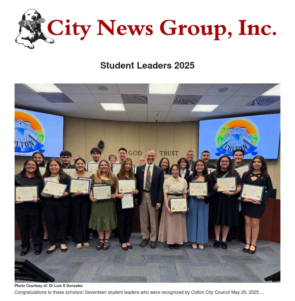 These seventeen students are to be congratulated for their accomplishments and given full support in their respective leadership roles, as well as in their future educational pursuits. The City of Colton continues to support its youth in the schools and is honored to recognize these student leaders as part of the Colton Student Leadership Day for 2025.