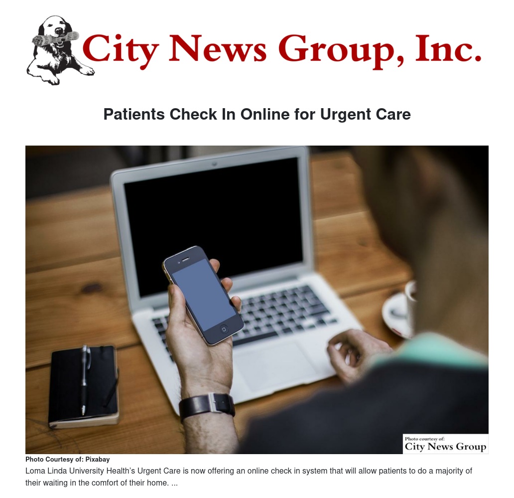 Loma Linda University Health’s Urgent Care is now offering an online check-in system that will allow patients to do a majority of their waiting in the comfort of their home.