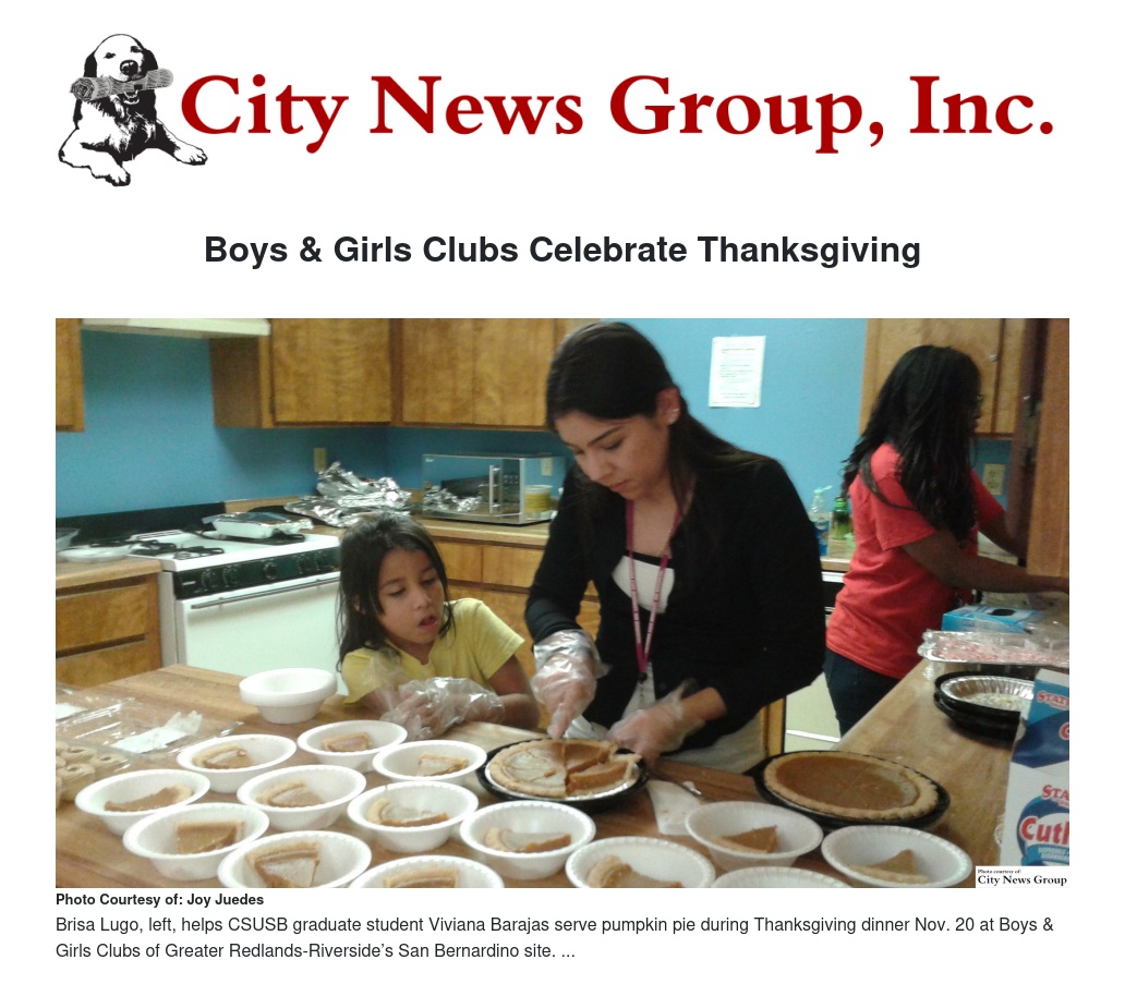 On Friday, Nov. 20, the Club’s San Bernardino site hosted a Thanksgiving meal for members and their families. Club staff also honored Cal State San Bernardino volunteers – who donated the food - for their service at the site. Since 2007, students have been active volunteers at the site. The Club also recognized Member of the Month Isaac Delgado.