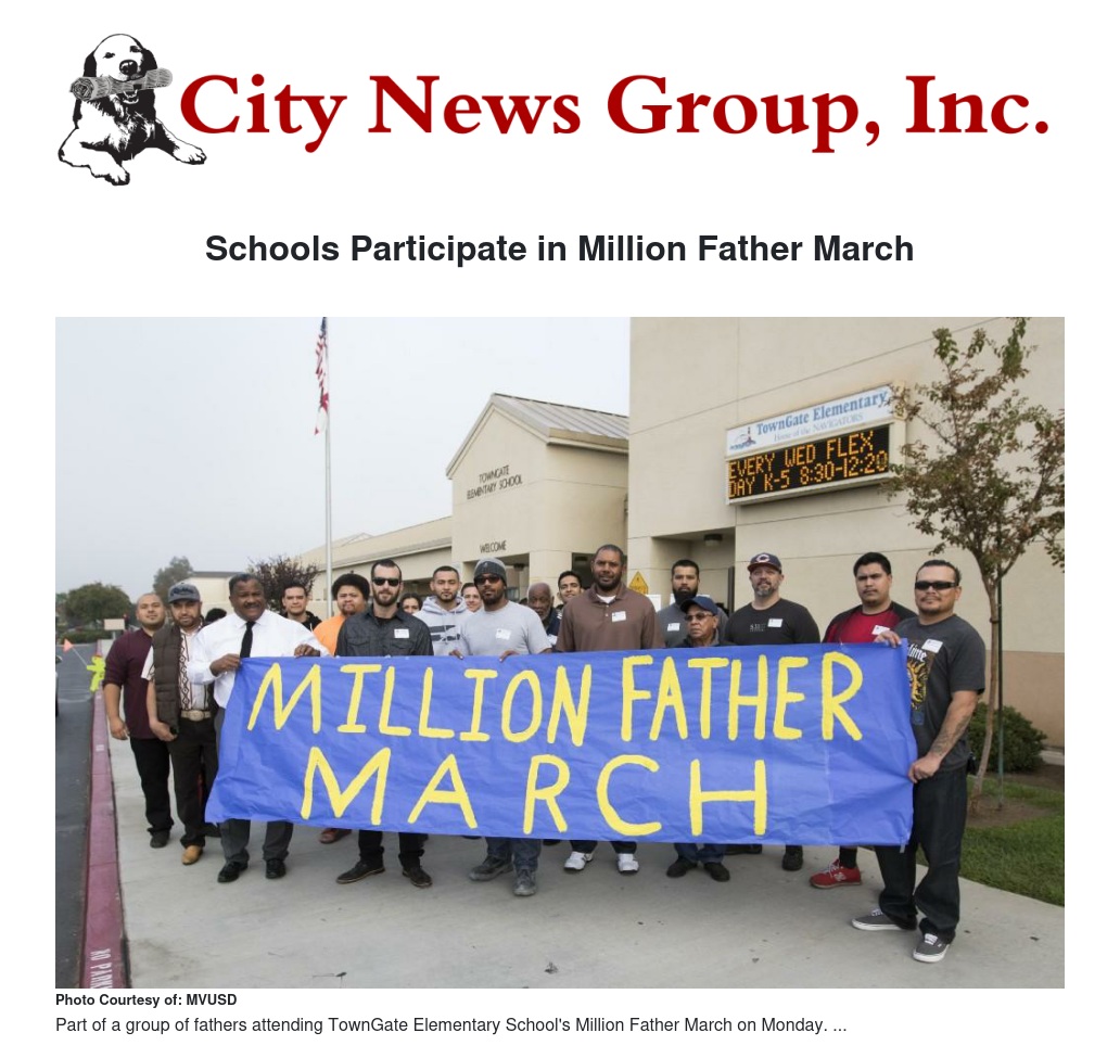 Butterfield, Hendrick Ranch, Ramona and TownGate Elementary Schools encouraged fathers to walk their children to school as part of the Million Father March this week. The Million Father March (MFM) is an opportunity for dads, grandfathers, and organizations to show their commitment to the educational lives of their children.
