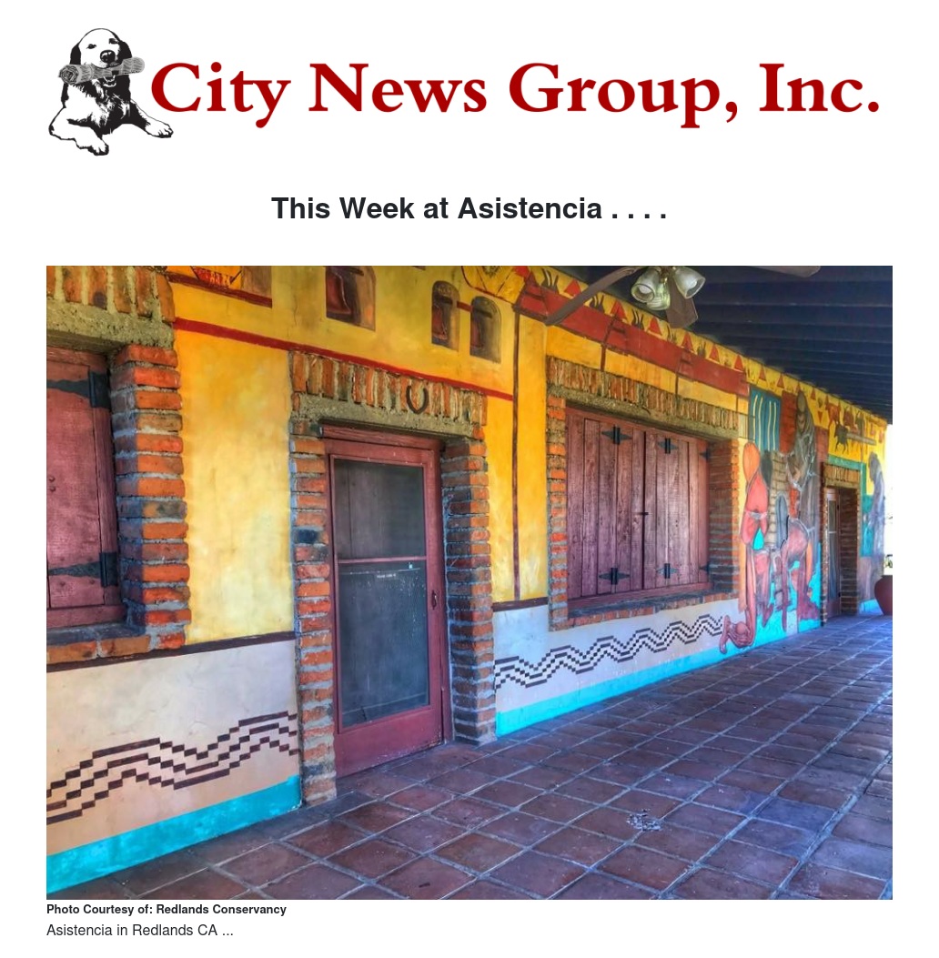 It's Open Gates for January 5, from 1 to 4pm. This week you can meet Redlands Conservancy's founding president, Mr. Bob Clark, in person. His sister, Jeanne, will accompany him. Do you still have holiday guests? Why not take them to Asistencia for a lovely afternoon! Visit with Bob and Jeanne to learn the whole Redlands Conservancy story, stroll through the rooms and the chapel, stop at the QR code signs, point your phone at it and do what it tells you to do. You'll learn all about Asistencia, from the pre-history times, through the mission history, the Mexican Lugo family ownership, the Mormon Church membership, the Barton ownership, to the restoration by the Works Progress Administration in the 1930s and the San Bernardino County Museum ownership. Finally, Redlands Conservancy takes over in 2018. You'll learn about all the opportunities you have to participate in what happens at Asistencia. Plus, you can bring your picnic to enjoy in the courtyard. It's all free and open to the public. On Sunday, January 12, you can enjoy the practice jam session by Justice Chickens, Redlands Conservancy's neighborhood band. Bring your instrument and join in.