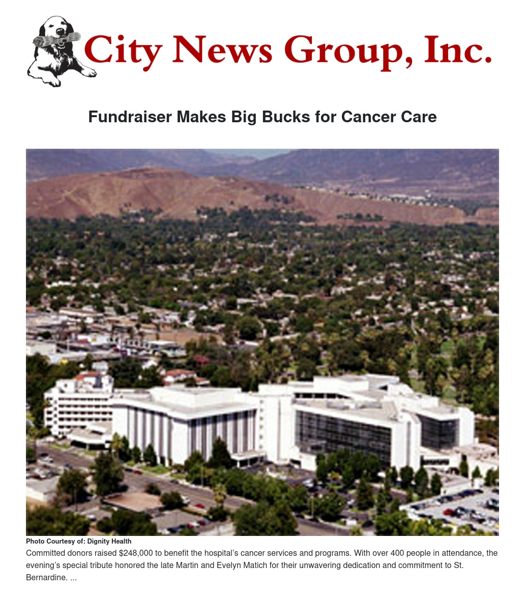 Supporters of the St. Bernardine Medical Center(SBMC) Foundation recently came out to celebrate in style at the annual “Gathering at Twilight” fundraising gala. Committed donors raised $248,000 to benefit the hospital’s cancer services and programs.