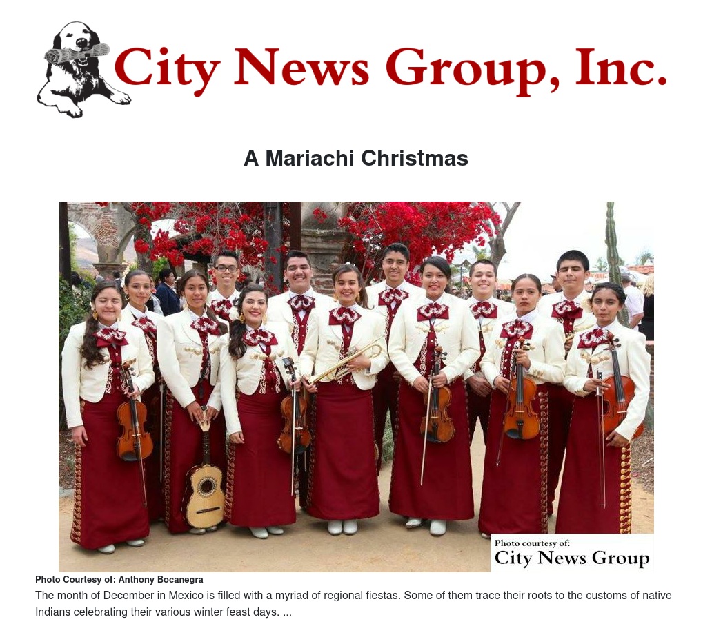 The community is invited to join Sinfonia Mexicana as it celebrates the holidays with its Annual Mariachi Christmas concert on Dec. 13 in Whitmer Auditorium at Colton High School.