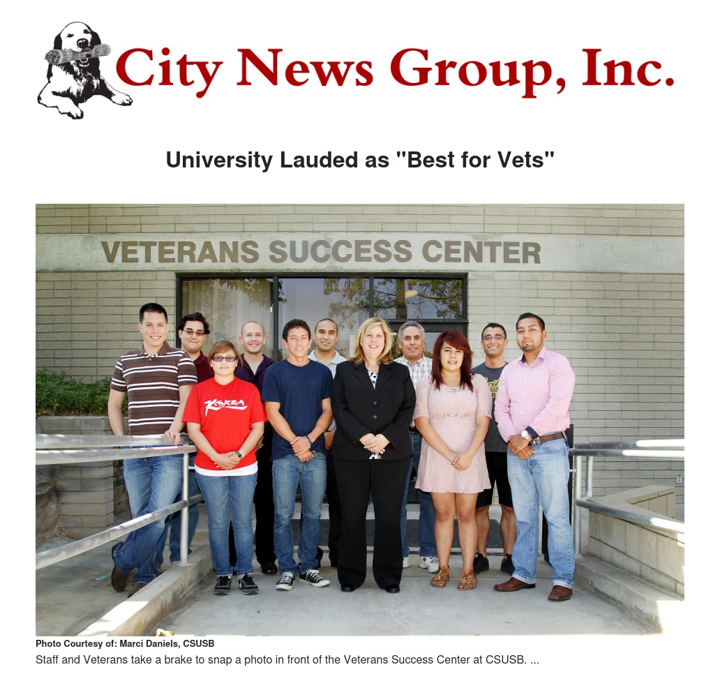 Recently, MTM published its “Best for Vets: Business Schools 2014” list, ranking CSUSB’s MBA program number 22 out of 140 respondents. The ranking was based on the university’s efforts to assist veterans, active-duty service members and their families in pursuing a college education.