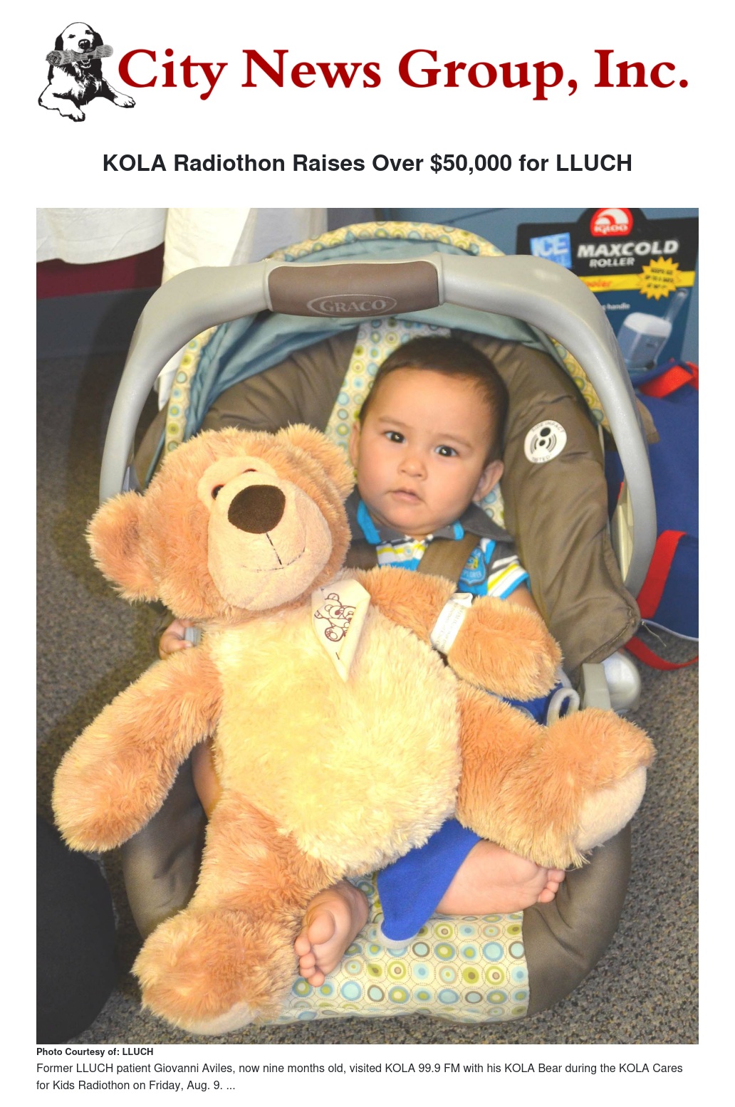 “It’s stories like Giovanni’s that remind us how important something as simple as a little bear [is] to a child, or even a parent,” said Gary Springfield, Program Director, KOLA 99.9 FM. “This Radiothon is just one way we can lend a helping hand to the hospital that does so much for the kids in our community.”
