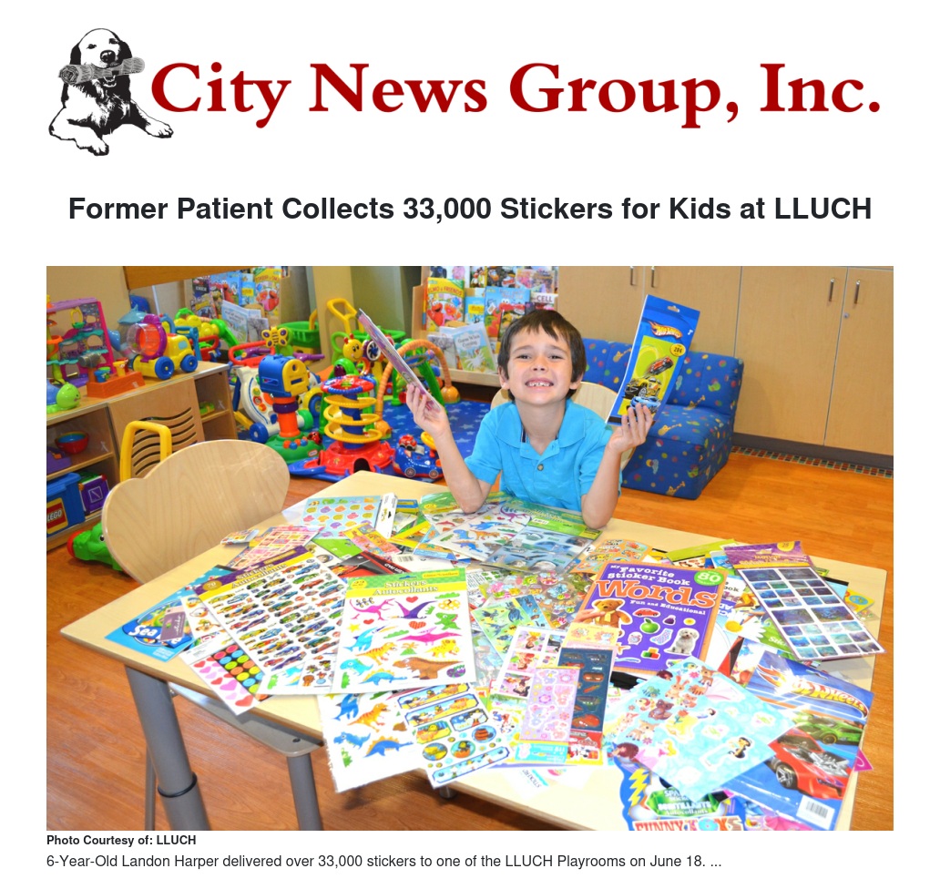 “We greatly appreciate this act of kindness and gratitude that Landon has bestowed on the patients here,” said LLUCH administrator Zareh Sarrafian. “Knowing firsthand what it’s like to be a patient here himself, he knows that something as simple as a sticker can make a patient’s day just a little bit better. He is a great example to his peers.”