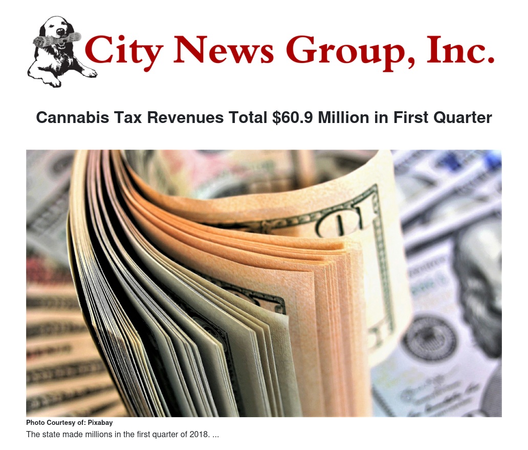 The California Department of Tax and Fee Administration (CDTFA) today released revenue numbers for cannabis sales in the first quarter of 2018. Tax revenue from the cannabis industry totaled $60.9 million since January 1, 2018, which includes state cultivation, excise and sales taxes. It does not include local tax revenue collected by cities or counties.