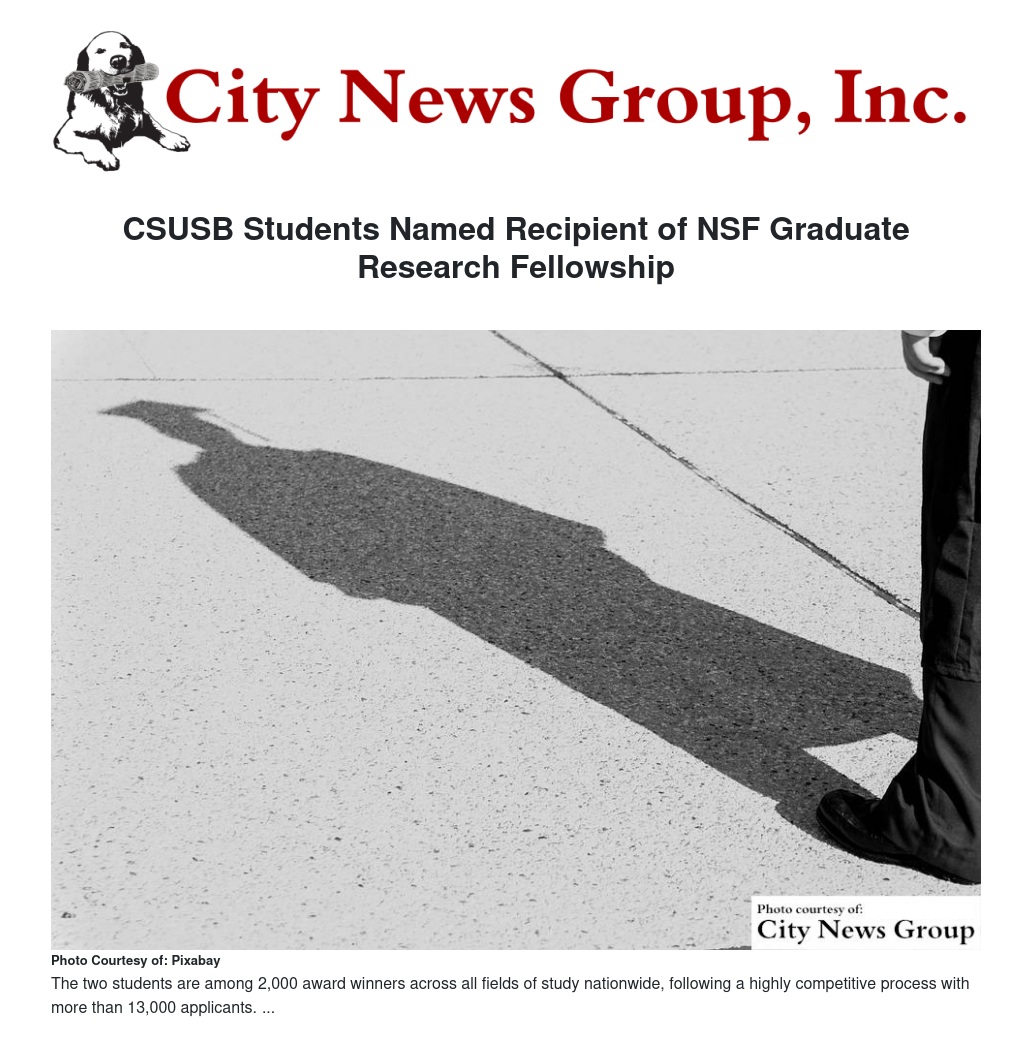 CSUSB Students Named Recipient of NSF Graduate Research Fellowship by Ariel Dun - City News Group, Inc.