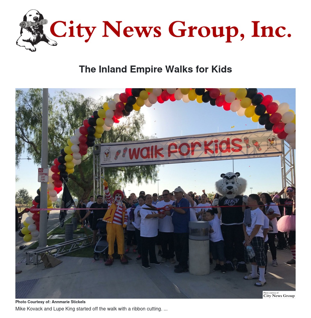 The Ronald McDonald House is currently set to host Walk for Kids events in Orange County and Long Beach. Though the Inland Empire Walk for Kids may have ended, funds will continue to be collected for the next 30 days.