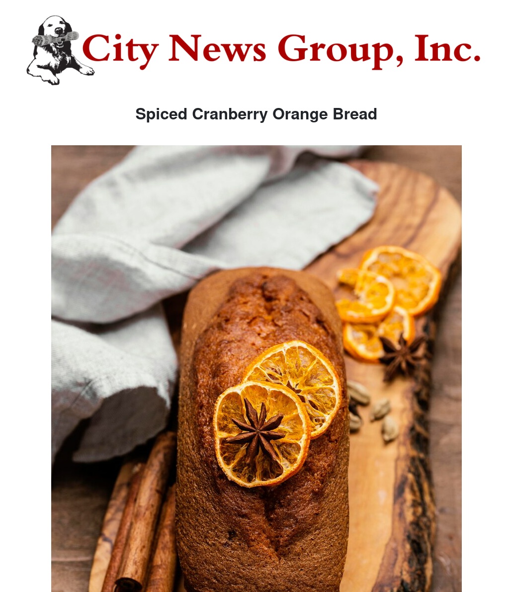Spiced Cranberry Orange Bread by Eleanor Davis - City News Group, Inc.
