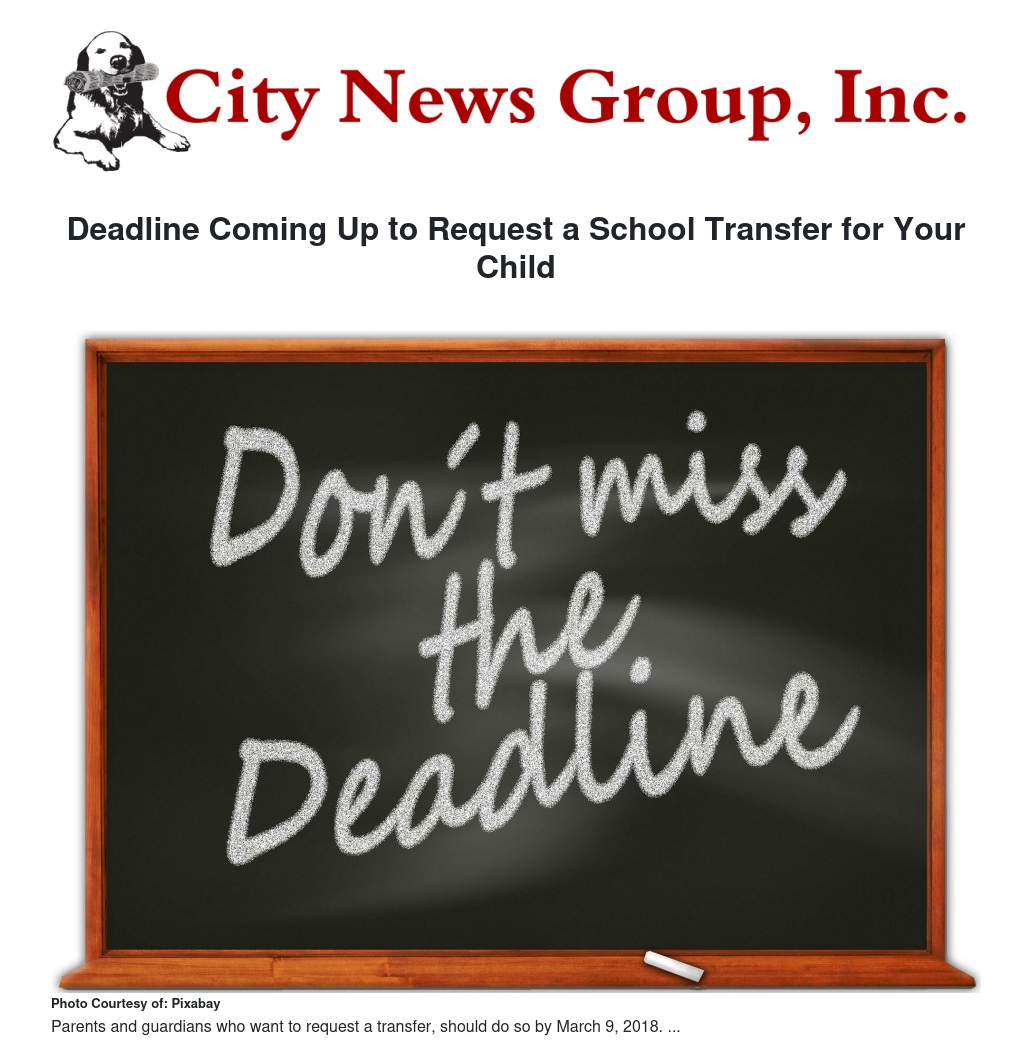 Parents and guardians who want their child to attend a San Bernardino City Unified School District (SBCUSD) school other than the child’s home school need to request a transfer by March 9, 2018.