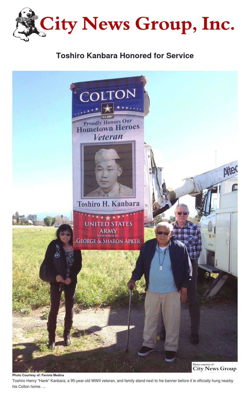 95-year-old Toshiro Henry “Hank” Kanbara was honored with his very own military banner, located at the northeast corner of San Antonio Drive and Mt. Vernon in Colton, on Tuesday, March 3.
