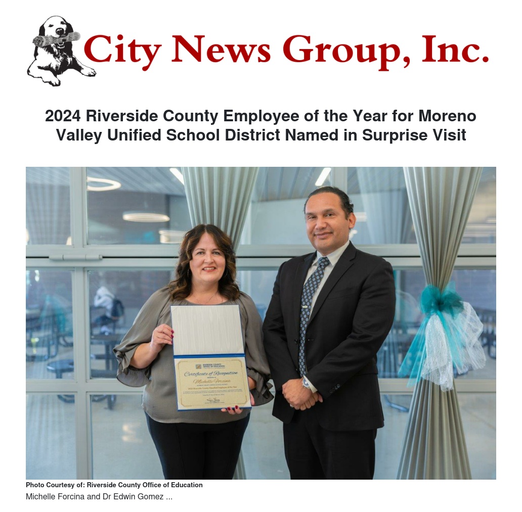 2024 Riverside County Employee of the Year for Moreno Valley Unified School District Named in Surprise Visit by Riverside County Office of Education - City News Group, Inc.
