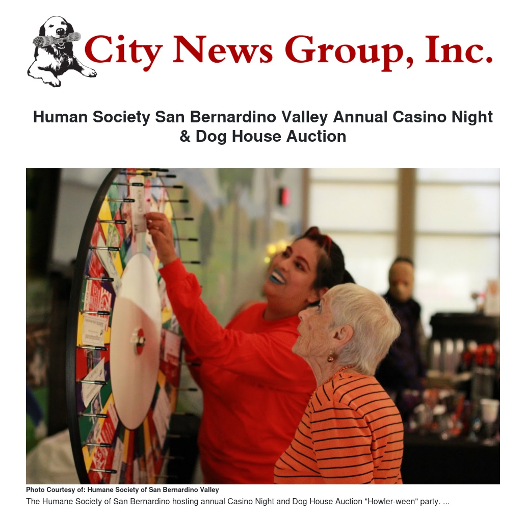 The Humane Society of San Bernardino Valley will be hosting their annual Casino Night and Dog House Auction “Howler-ween” Party on Saturday, October 15, 2022, from 4:30 pm – 9:30 pm at 374 West Orange Show Road, San Bernardino.