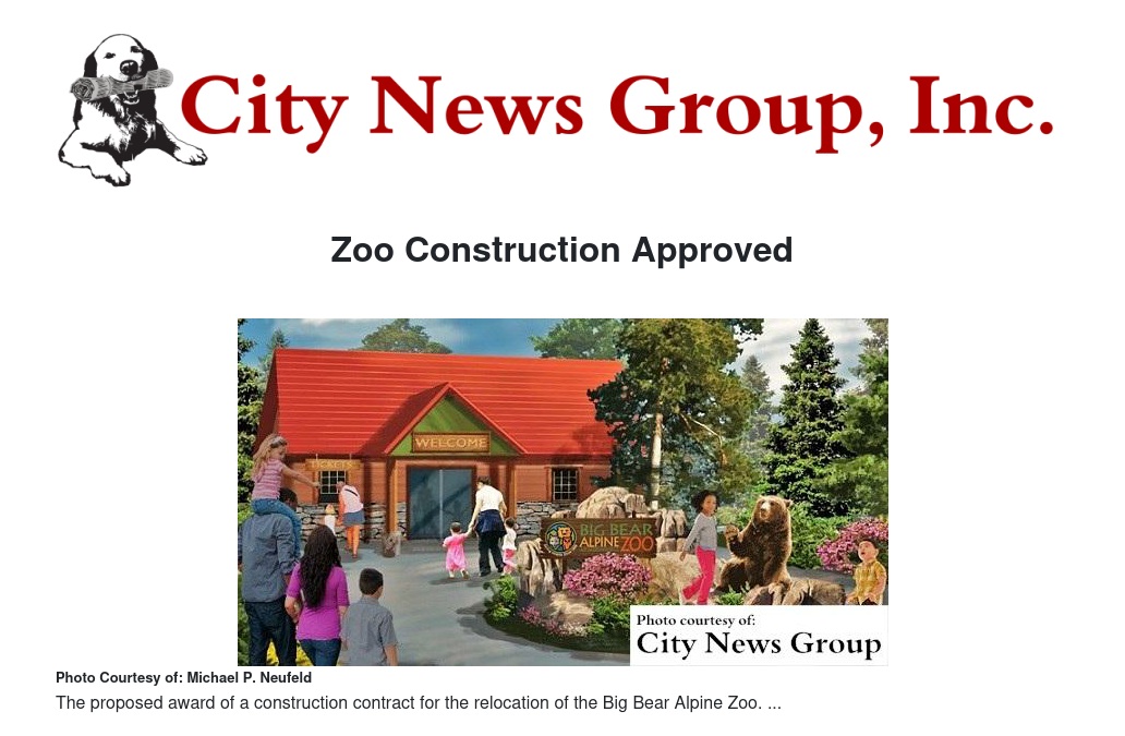 SAN BERNARDINO >> On Tuesday, May 24, the Board of Supervisors approved the construction contract for the Big Bear Alpine Zoo Relocation Project with M.S. Construction Management Group.