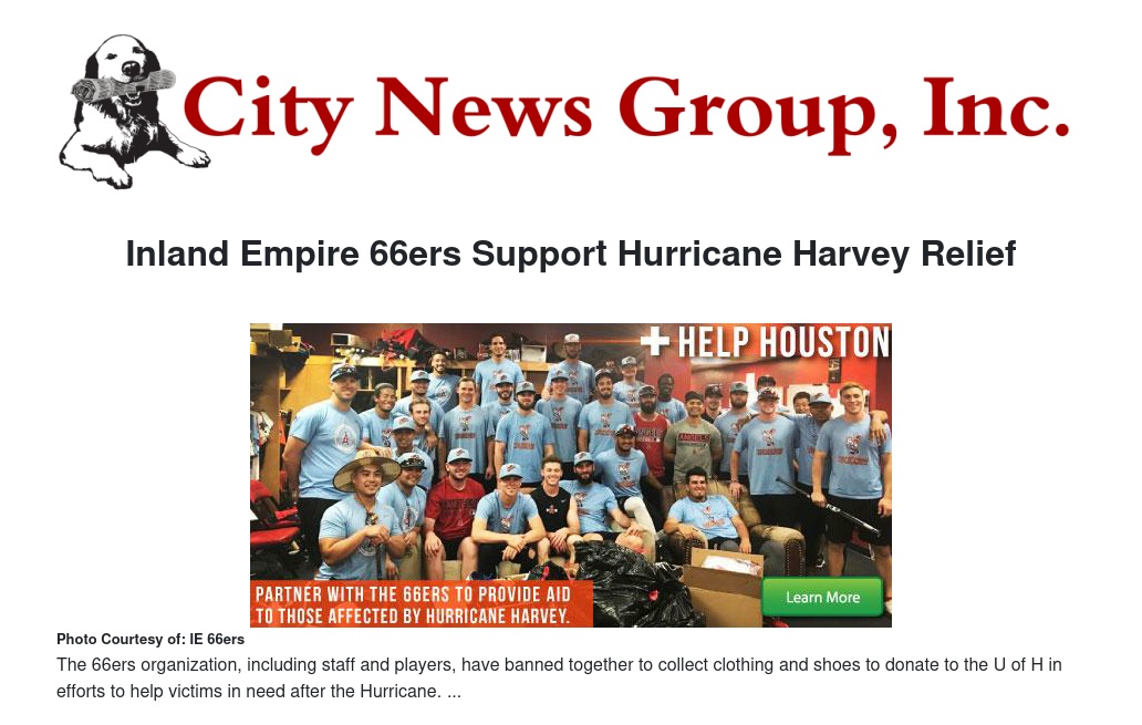 Inland Empire 66ers Support Hurricane Harvey Relief by Ryan English - City News Group, Inc.