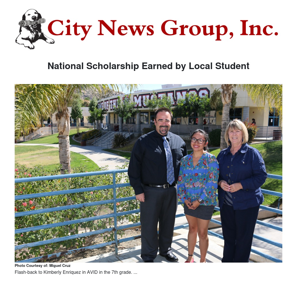 Enriquez has been involved with the AVID program since 7th grade. Vivien Kearney Serowik, RVHS AVID Coordinator, said, “She is a dedicated student who is remarkable in her ability to find time to take Honors and Advanced Placement classes, care for her younger siblings, complete community service, and be an active member of clubs on our campus."