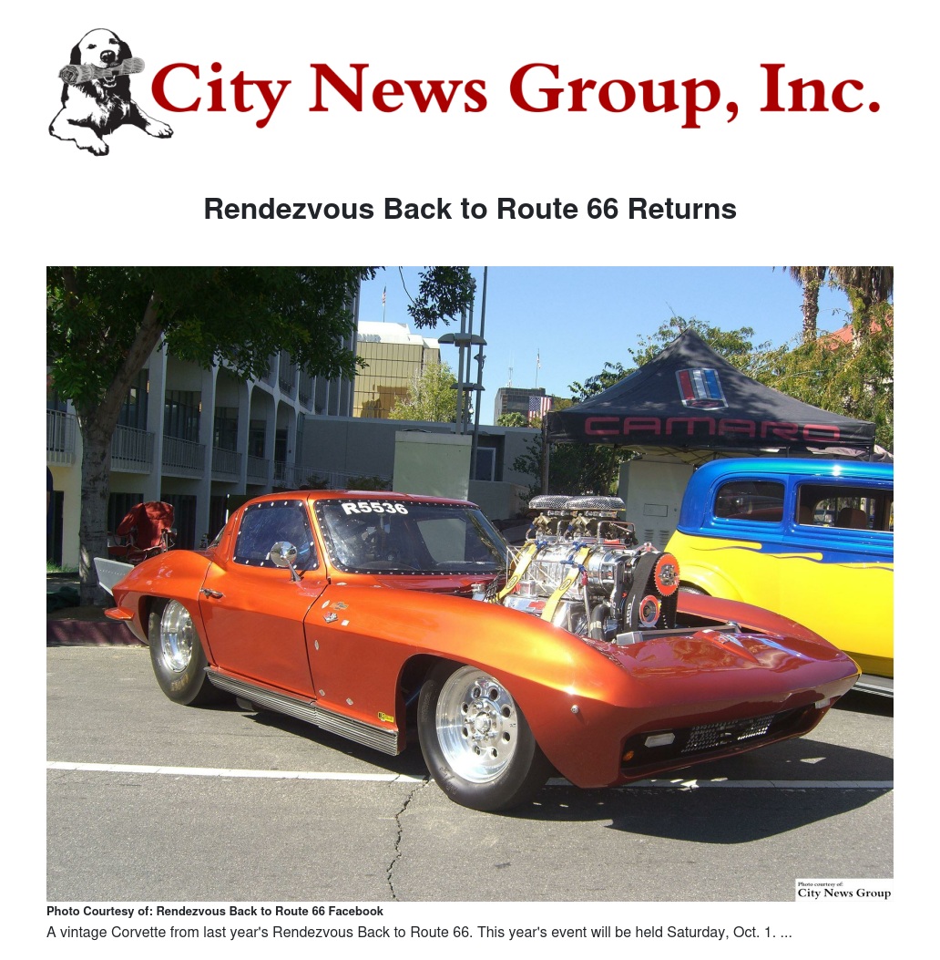 SAN BERNARDINO>> The Rendezvous Back to Route 66 returns to downtown San Bernardino on Saturday, Oct. 1 from 10 a.m. to 10 p.m. The event area is bordered by 2nd Street to 5th Street and E Street to Arrowhead Avenue and admission is free.