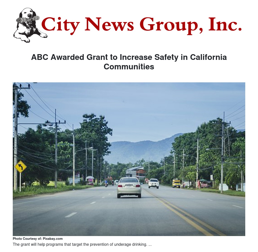 The California Department of Alcoholic Beverage Control (ABC) announced that it has been awarded a $1.8 million grant, which will help fund several departmental programs that increase public safety by combatting underage drinking and educating licensees about alcoholic beverage laws. Additionally, the grant resources will be utilized for holiday enforcement operations throughout California. To maximize the public safety campaign relating to alcoholic beverage use and sale, this grant allows ABC to award grants to local law enforcement agencies. These local law enforcement grant dollar amounts vary from $10,000 to $25,000.