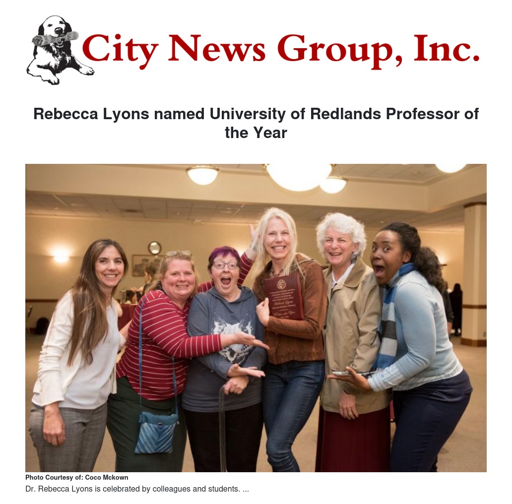 Rebecca Lyons named University of Redlands Professor of the Year by Jennifer Dobbs - City News Group, Inc.