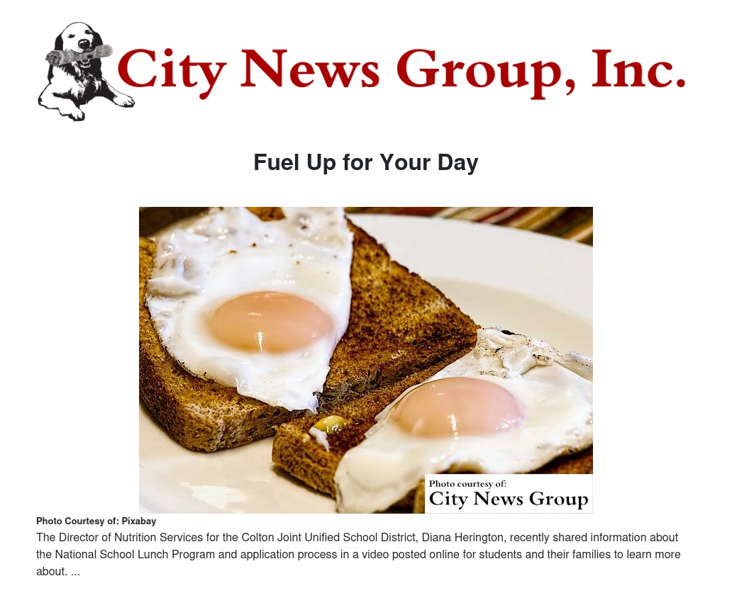 The Director of Nutrition Services for the Colton Joint Unified School District, Diana Herington, recently shared information about the National School Lunch Program and application process in a video posted online for students and their families to learn more about.