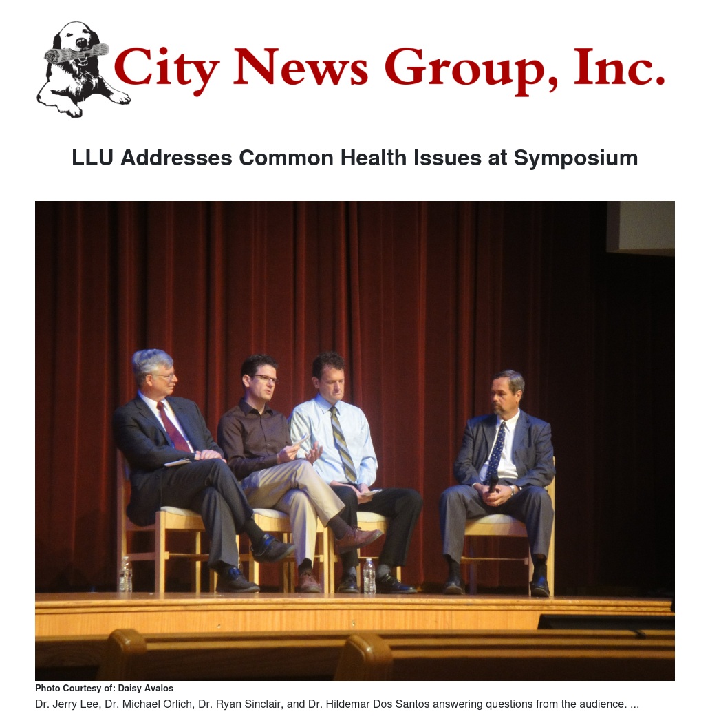The Second Annual Loma Linda Health Symposium, presented by the Drayson Center Preventive Care Clinic and the Loma Linda University Church, came to town over the weekend with speakers who provided information on a range of health topics to the community. The speakers present at the symposium were Dr. Ryan Sinclair, who discussed the various water treatments and the importance of water, and Dr. Jerry Lee, who discussed the effects of spirituality on health.